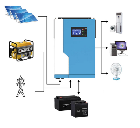 EA SUN 24V 3000VA, 2400W 230V HIBRIDNI SINUSNI INVERTER Z 50A PWM USMERNIKOM