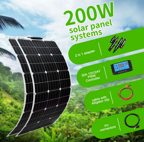 FLEKSIBILNI SOLARNI KOMPLET 100W – 300W, PVM REGULATOR, POVEZOVALNI KABLI